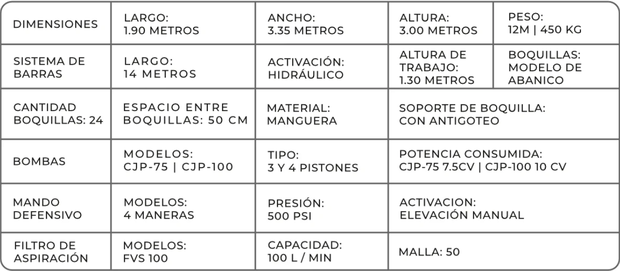 Adecuado para grandes áreas agrícolas, cuenta con un tanque de 800 litros, asegurando mayor caudal y productividad en el campo.